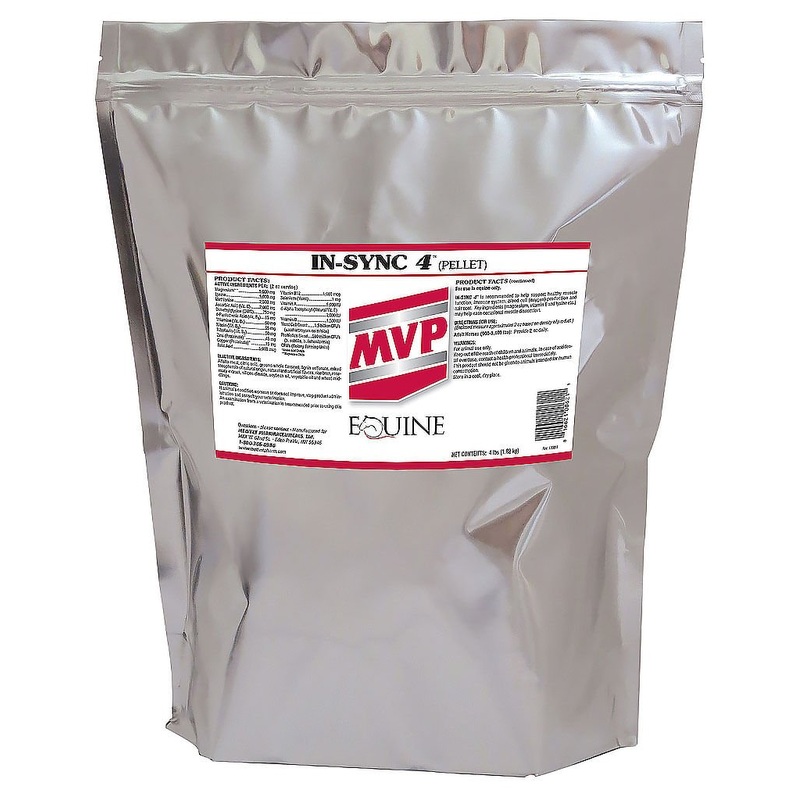 Med-Vet In-Sync 4In-Sync 4 is recommended to help support healthy muscle function, the immune system, blood cell (oxygen) production, and hair & coat. Key ingredients (magnesium, vitamin E and lysine etc.) may help ease occasional muscle discomfort. Helps