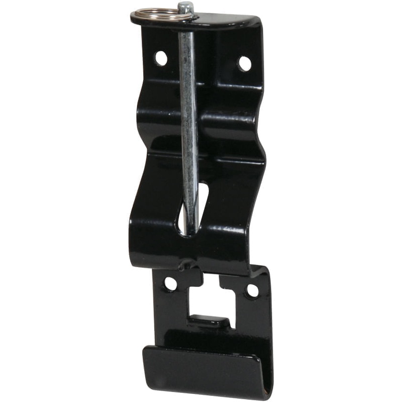 Metal Wall BracketFor hanging flatback buckets on any wall or fence post. Pin locks bucket handle in tip-free position. Exclusive patent pending.Made of heavy gauge steel with black powder coating. Adjustable. Handles for larger buckets rest in the upper p
