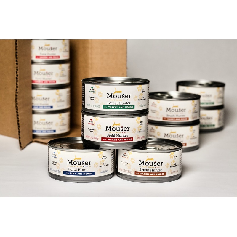 Satisfy your cat's appetite with the Mouser Canned Cat Food Variety Pack. This pack offers variety while saving you time. With a range of flavors, your cat won't have to eat the same thing day after day. Treat your feline to a delicious and hassle-free mea