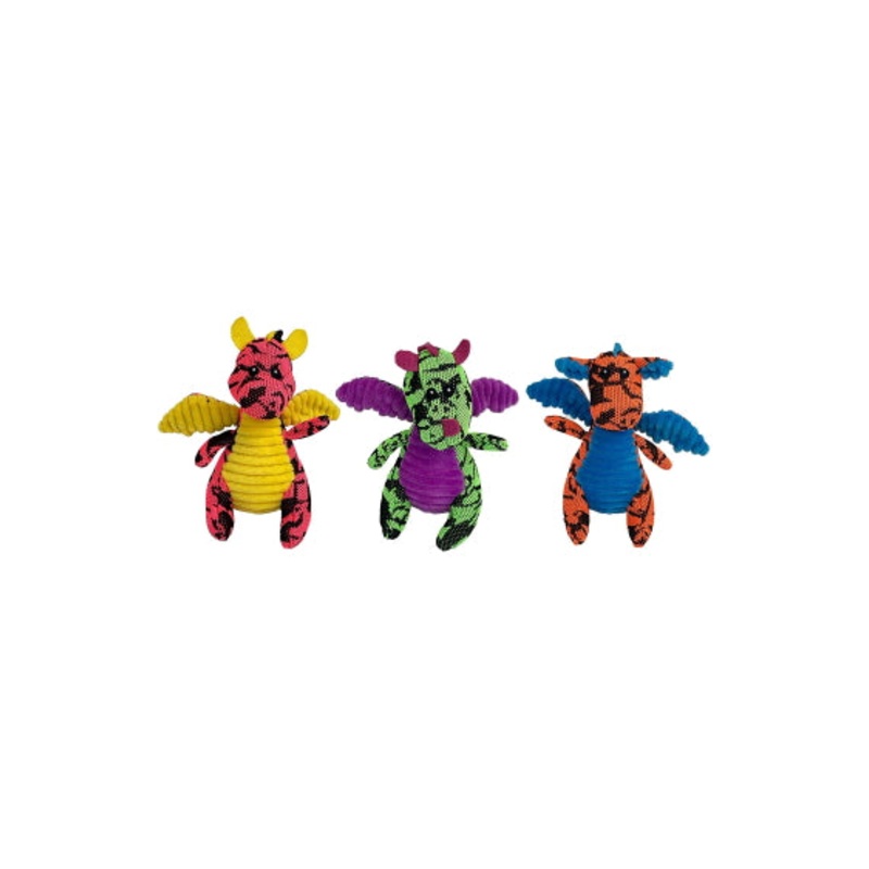 Multipet Small Dog Toy Minipet DragonMiniPets are small toys designed for small dogsBright, patterned neon dragonsCrinkly ears and wings, with textured bodiesIncludes a squeakerAssorted styles. You will receive one item