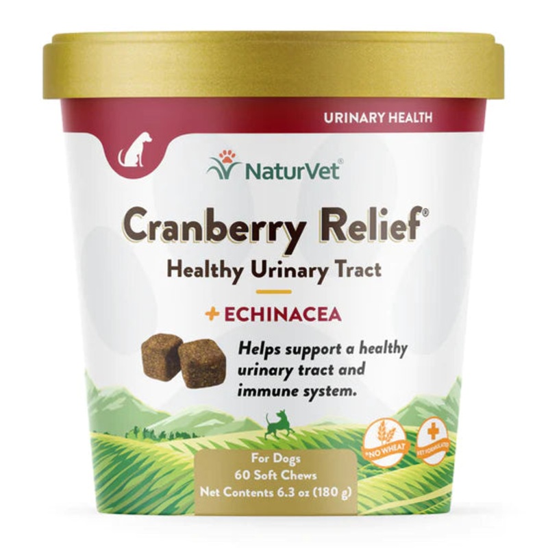 Cranberry Relief Soft Chews Plus Echinacea help support a healthy urinary tract and overall bladder function.Provides immune system support to help maintain your pups overall health.Veterinarian formulated with Cranberry Extract, Echinacea, Calcium Ascorba