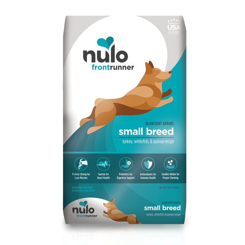 DescriptionNulo Frontrunner Ancient Grains Turkey, Whitefish & Quinoa Small Breed Dry Dog Food is the paw-fect high-meat kibble for the little lad with a taste for fine fare. Made from a careful selection of animal-based proteins including real deboned tur