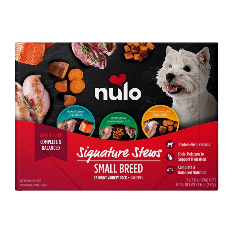Nulo Signature Stew For Small Breed DogsVariety PackNulo Signature Stews are grain-free, complete and balanced meals that add moisture, nutrition, and flavor to your dog's diet. This recipe is made with essential nutrients for small breed dogs, with ingred