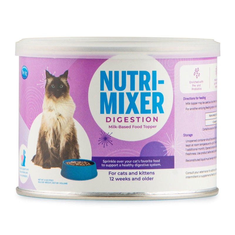 When kitty needs a little extra digestive support, were here to deliver with this tasty milk-based food topper. Simply sprinkle Nutri-Mixer Digestive over your cats favorite food to provide additional calories and digestive benefits. Now thats a supplement thats hard to top.