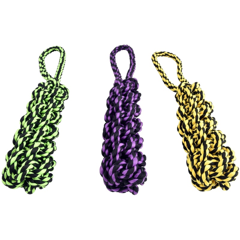 Nuts for Knots Rope Tug with Braided Stick, Assorted, 16"So much more than just a length of rope! A game of tug of war, a dental hygiene tool, a teething toy for puppies or a stress reliever for adult dogs. What seems like a simple toy can provide your pet