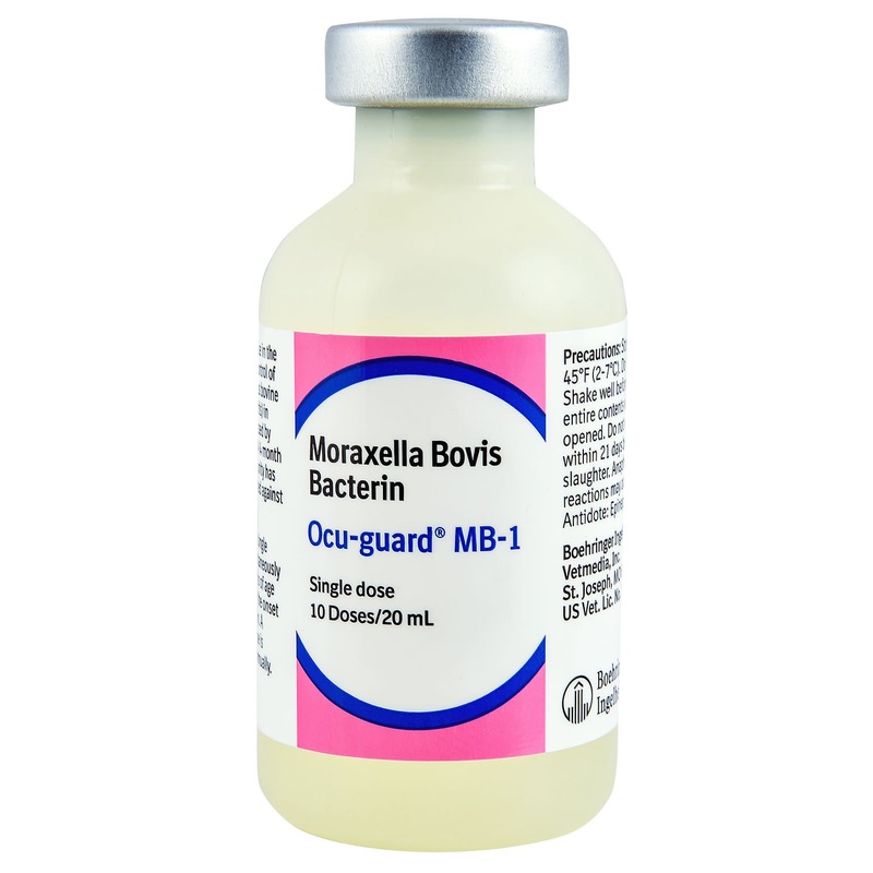 Ocu-Guard MB-1 is a Moraxella Bovis Bacterin, designed to prevent and control pinkeye (infectious keratoconjunctivitis) caused by Moraxella bovis in healthy cattle. This vaccine contains eight isolates of Moraxella Bovis, which is the primary cause of pinkeye in cattle. A single 2 mL dose provides a proven 4-month duration of immunity, and it is safe for use in cattle 2 months of age and older. Annual revaccination is recommended to maintain immunity.