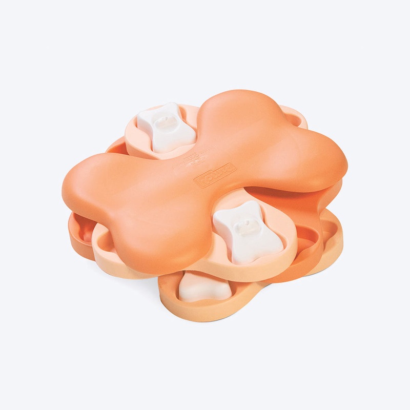 The Puppy Tornado level 2 interactive dog puzzle from Nina Ottosson is the ideal toy for bored dogs and will keep them occupied for hours! This intermediate level toy features three tiers with twelve compartments for dog snacks or kibble. This mentally stimulating and entertaining dog game encourages your pup to spin the interactive puzzle tiers to reveal the rewards three bone shaped covers can be used to increase the difficulty! Made of BPA, PVC & phthalate-free material that can be hand washed between each use with warm water and soap.