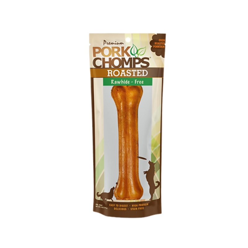 7" Roasted Pressed Bones - 1 CountPremium Pork Chomps 7" Roasted Pressed Pork Skin dog chews are fully digestible and the perfect rawhide alternative for your pup!! Pork Chomps are made from baked pork skin creating a healthy, low fat, high protein dog che