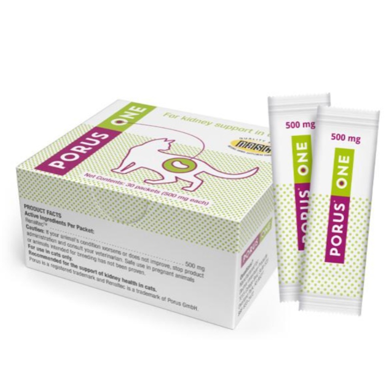 Porus One binds protein byproducts in the intestines where they are excreted in the feces. This binding process helps to keep the byproducts from being converted into uremic toxins, which supports kidney health.