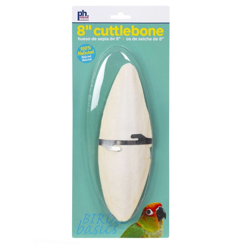 8-INCH CUTTLEBONE / 1PCCuttlebone is essential for all birds and promotes good health by keeping beaks and nails trimmedCuttlebone measures approx. 8" long (max)Cuttlebones are a natural product, and packaged bone will vary in color and sizePrevue Pet Prod