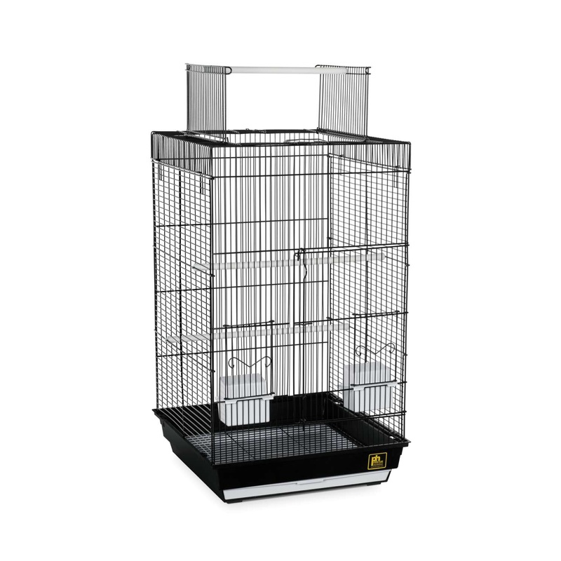 Playtop Parakeet Cage BlackPlaytop roof opening with perchLarge hinged front access doorRemovable grille & pull-out debris tray for easy cleaningFits on stand #445Prevue Pet Products Playtop Parakeet bird cage black SP1616PTB features a playtop roof and ha