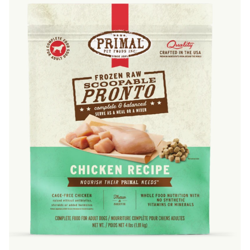 Primal Raw Frozen Pronto Canine Chicken Formula Dog Food Pellets 4lboffers the convenience and benefits of a well-balanced, safe and wholesome raw-food diet without having to grind, chop, measure or mix the ingredients yourself! Raw Frozen Pronto thaws in just minutes, so you canScoop & Serve.