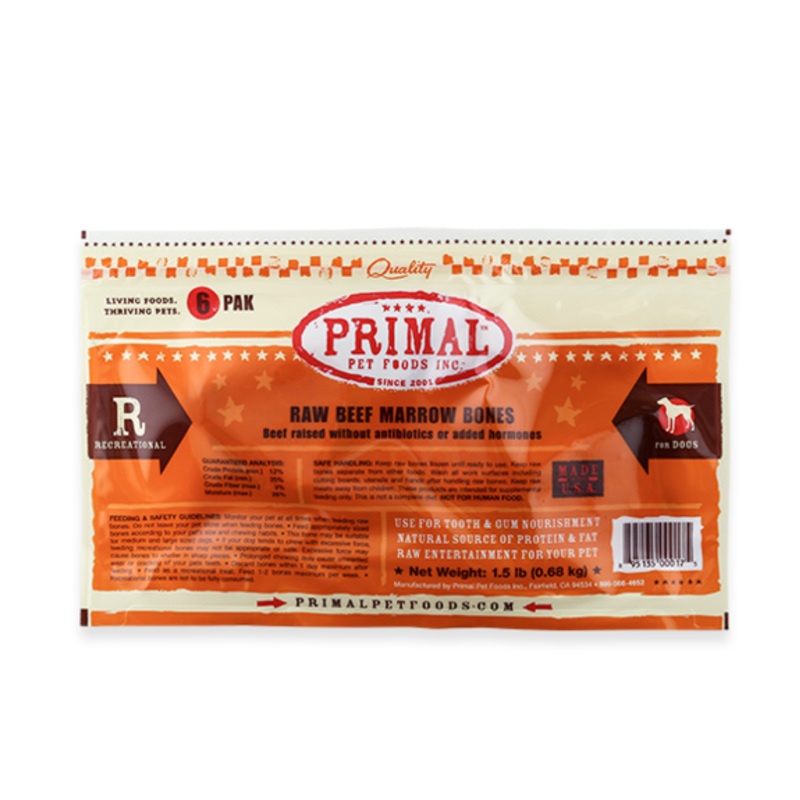 Primal Raw Recreational Beef Marrow Bones 6 Pack