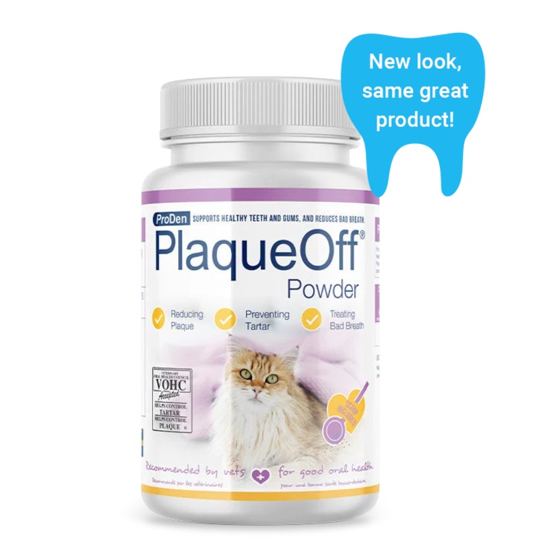 The ProDen PlaqueOff Powder for cats is a 100% natural pet food supplement containing the natural kelp ingredient A.N ProDen shown in clinical trials to help reduce plaque and tartar and to help improve bad breath. The results are usually seen between 3 to 8 weeks, with continued use. Sprinkle the powder over the cats ordinary food once a day with the supplied scoop. The Powder Cat has a tasty formula containing brewers yeast specially made for cats- your cat wont be able to resist it! A 40g bottle can last up to roughly 4 months.