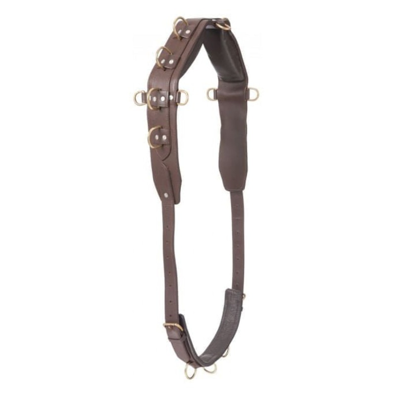 Professional Heavy Leather SurcingleAn absolutely complete surcingle made of quality heavy leather with rings and dees.Professional Heavy Leather Surcingle Key Features:made of quality heavy leatherrings and dees correctly positionedcan attach reins, rope