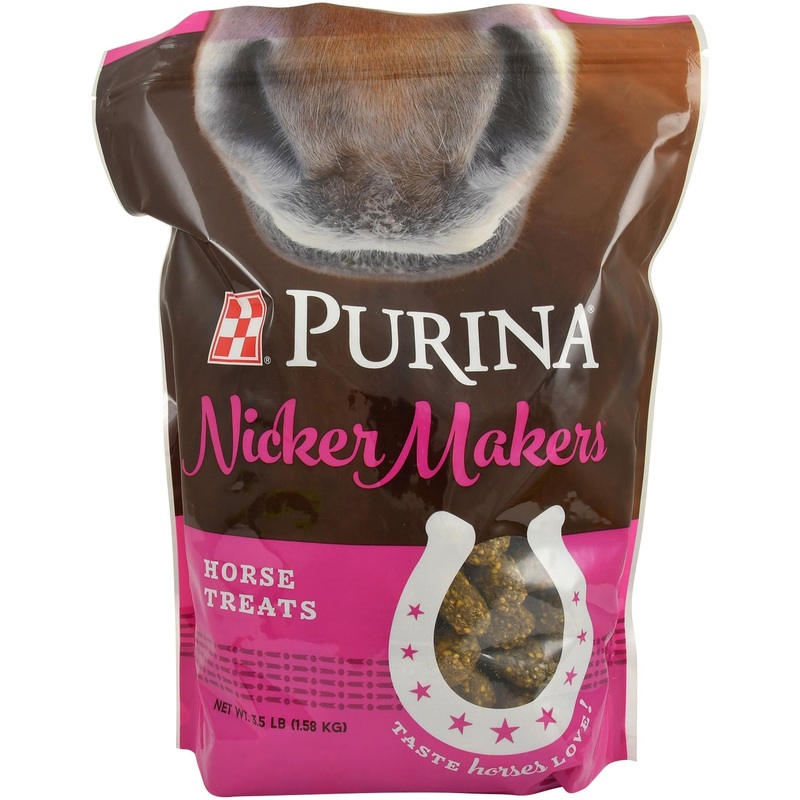 Purina Nicker Makers Horse Treats are a delicious and nutritious complement to any horses diet. Your horses will love the satisfying crunch and hint of molasses, while youll love their eager response to these tasty rewards!