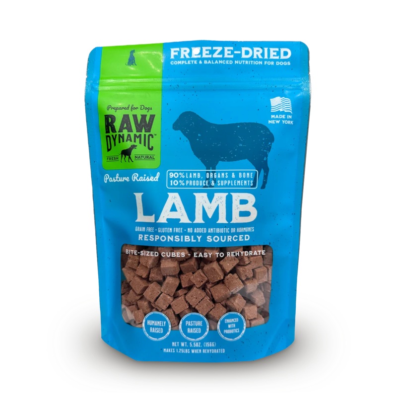 RAW DYNAMIC Lamb formula is formulated to meet the nutritional levels established by the AAFCO Dog Food Nutrient Profiles for All Life Stages, including growth of large-size dogs (70Ibs or more as an adult).