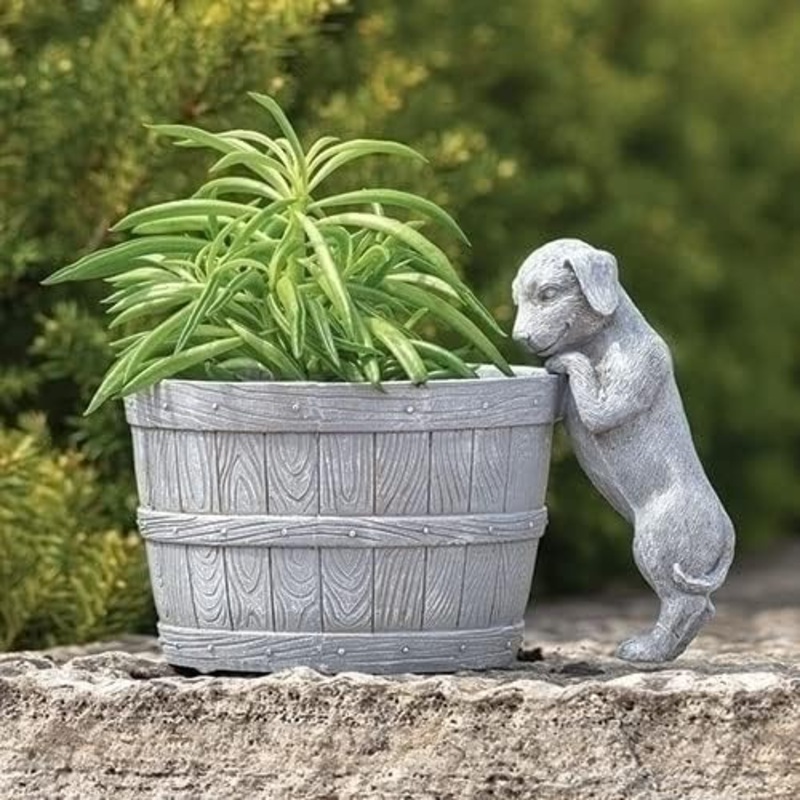 ROMAN PUPPY BUCKET PLANTERExceptional Detail: This highly favored collection brings classic religious inspiration to any space in your home or office with beautifully fine crafted attention to detail.Quality Material: This item is carefully constructed of