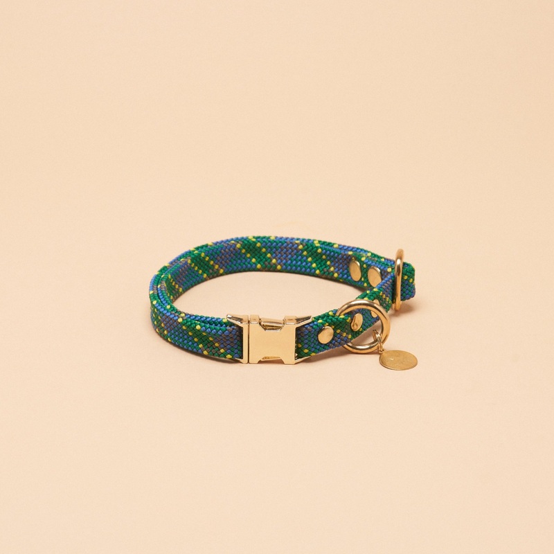 Your pup will wow every dog in the park with this flat rope collar in Tartan Green – a stunning tartan pattern in green, yellow, blue and purple.