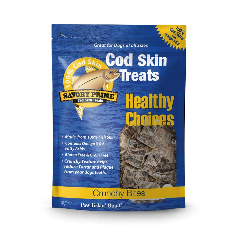 Savory Prime Cod Skin Fish Crunchy Bites Treats for Dogs