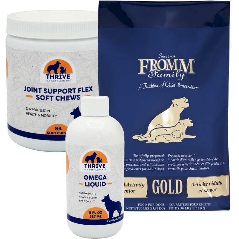 Help your old friend maintain mobility, joint health, and overall well-being with the Senior Bundle. Designed for aging dogs, this all-in-one solution combines gentle nutrition, joint support, and essential omega-3 fatty acids.This bundle makes it easy to