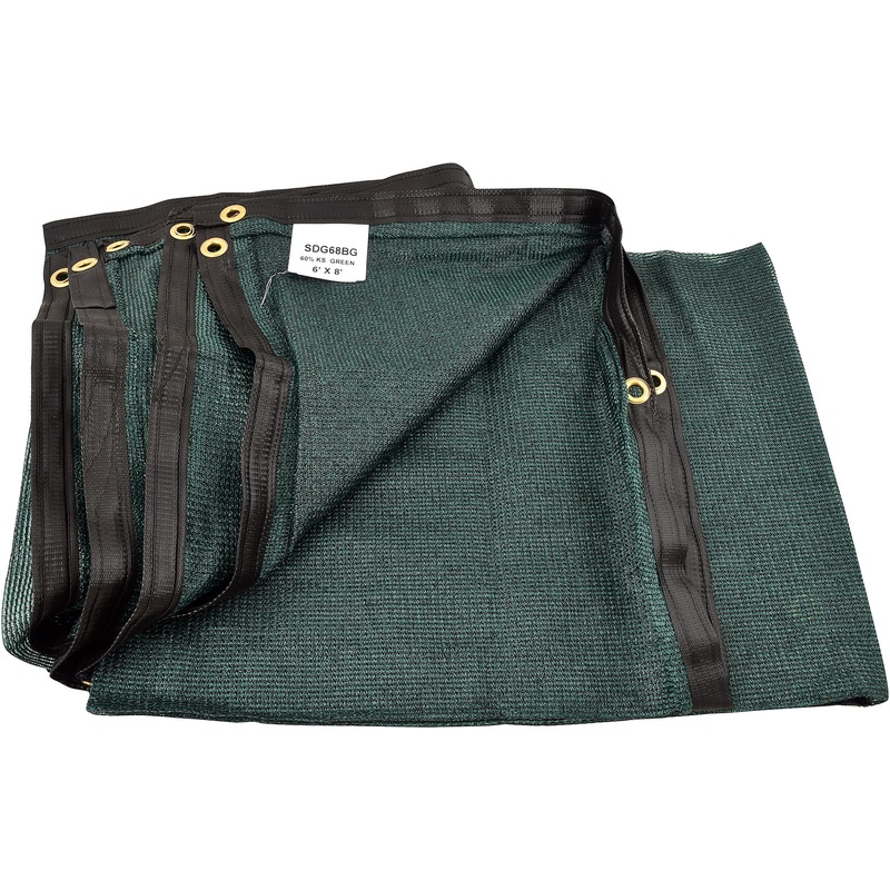 Protect your pet from the wind and heat with the Shady Dog Kennel Cover. Made from high-density polyethylene lock-stitched screen, this UV stabilized cover provides a 60% shade factor and will not rot or mildew. It helps cool your pet by blocking the hot sun rays and drawing in cool air from the ground, reducing temperatures by up to 15 degrees. The perimeter is double-stitched, and solid brass grommets spaced every 24″ ensure extra strength and durability.