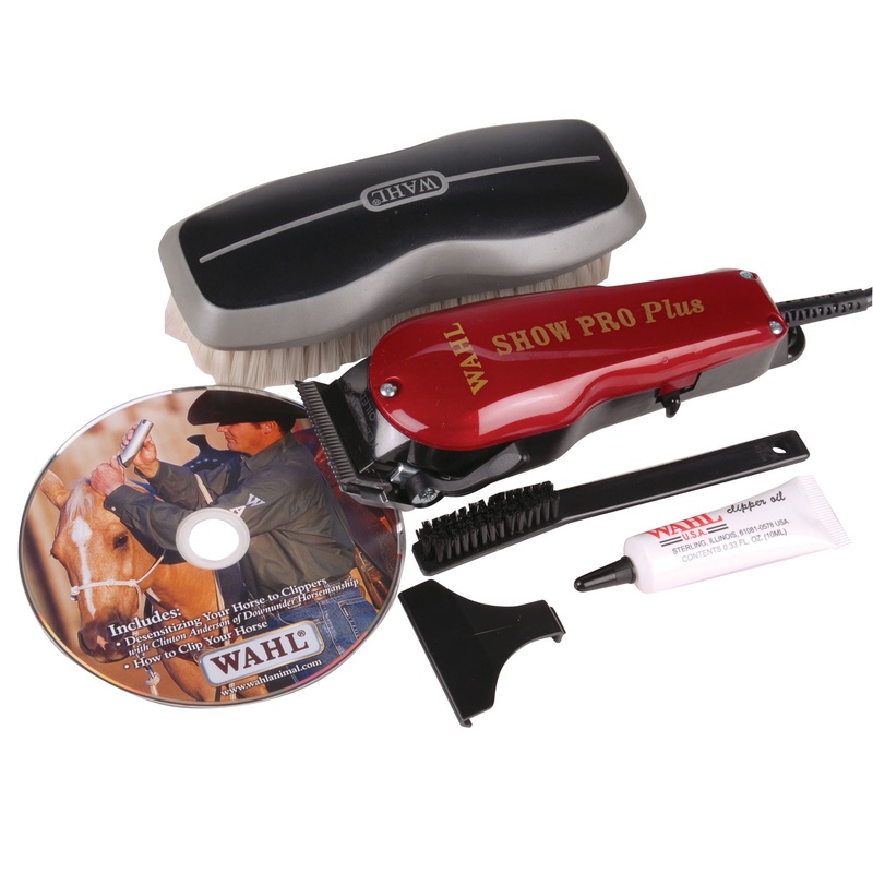 Wahl Show Pro Plus Clipper Kit 30% more power for maximum performance. Ultra-fast electromagnetic motor. Blade easily adjust to #10, #15, and #30. Wahl Show Pro Clipper Kit is great for: clipping fetlocksbridle pathfaceearsIncludes: clipper adjustable blad