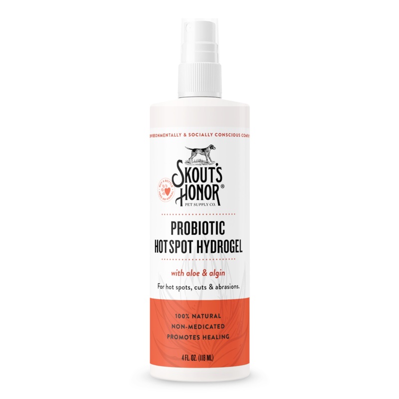 100% natural and non-medicated Probiotic Hot Spot Hydrogel with aloe & algin soothes, heals and protects wounds including hot spots, skin abrasions, lacerations, cuts, burns and irritated skin.
