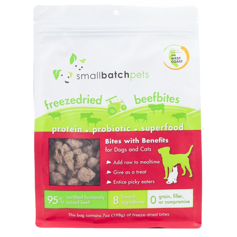 Single-source protein treats for dogs and cats featuring 95% meat, organ and bone, fermented purple cabbage probiotic and a different superfood with each flavor. Great for adding to mealtime or as treats.For nursing or pregnant dogs and puppies, quantities per day can be doubled.Please note that you should always consult your veterinarian especially when it comes to mommas-to-be or nursing dogs. These are only guidelines and may need to be adjusted depending on your individual dogs needs.