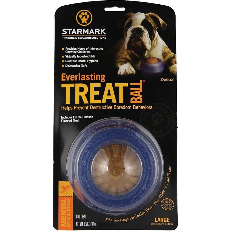 A fun chewing challenge for your dogthe Everlasting Treat Ball holds two Everlasting Treats and can be filled with small treats or kibble.