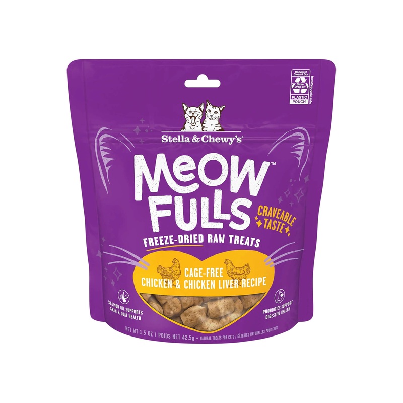 Freeze-Dried Raw Cat Treats with Soft Texture and Clean IngredientsStella & Chewy's Meowfulls are freeze-dried raw cat treats made with high-quality animal proteins and nutrient-rich organ meat. These freeze-dried raw cat treats feature a soft, bite-sized