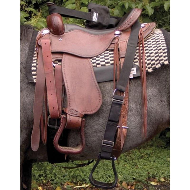 Step-Up StirrupSimply attach to your saddle horn and pull around the back of the cantle to create the extra step you need to get into the saddle.Features an adjustable strap and stainless steel hardware.Conveniently stores in its own bag so you can carry i