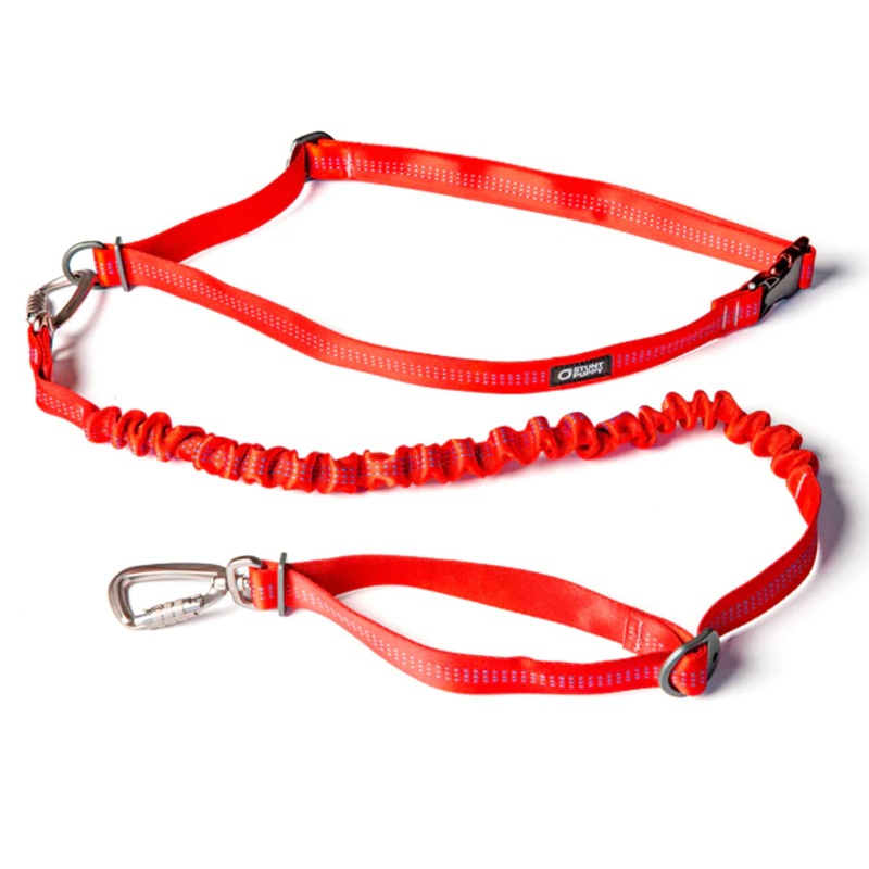 Our favorite running leash!Itkeeps you in control of your hound, even whenyou'rehands free. The tubular webbing is soft, strong, and durable.The D-ring on the waist belt can be moved to specific position to keep your dog in the "sweet spot" and the flex in