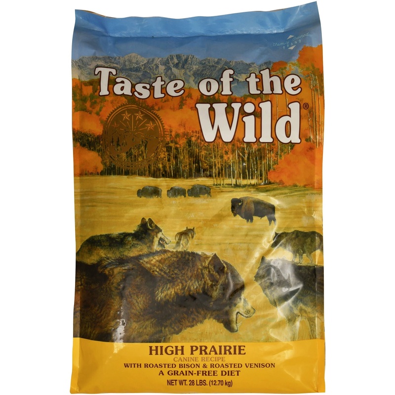 Taste of the Wild High Prairie Canine Recipe with Roasted Bison & Roasted Venison, Grain FreeTaste of the Wild High Prairie is a grain-free dry dog food for adult dogs, featuring real roasted bison and venison as primary protein sources. This high-protein