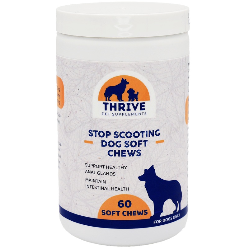 Say goodbye to awkward scooting and support your dogs digestive comfort with Thrives Stop Scooting Soft Chews. Specially formulated with a targeted blend of natural fiber sources, these daily chews help promote healthy anal gland function and normal bowel movements in dogs over 12 weeks old.