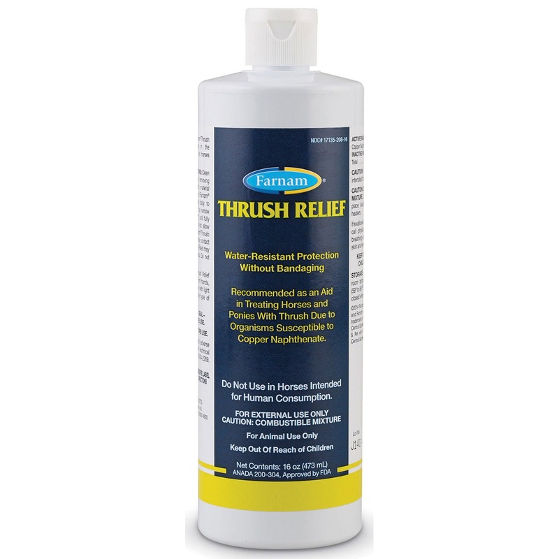 Thrush Relief, 16 oz37.5% Copper Napthenate.Use as an aid in the treatment of thrush. Water-resistant protection without bandaging.Compare to Kopertox.DIRECTIONS:Clean the hoof thoroughly, removing debris and necrotic material prior to application of Farna