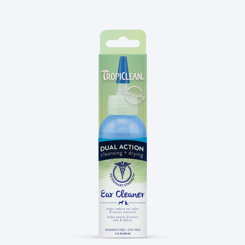 The TropiClean Dual Action Ear Cleaner for Pets is formulated to dissolve wax in your pet's ears. It also helps remove debris and keep your pet's ears clean, which results in reducing odour. the liquid quickly dies up to prevent excess moisture and to prev