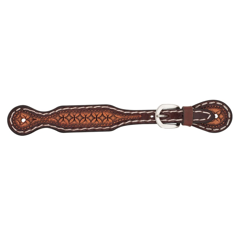 Turquoise Cross Geometric Tooled Spur Straps, LadiesThese spur straps are constructed from light oiled leather with heavy-stitched accents that highlight the tooling perfectly. Made from genuine cowhide for quality you can trust. Features non-rust stainles