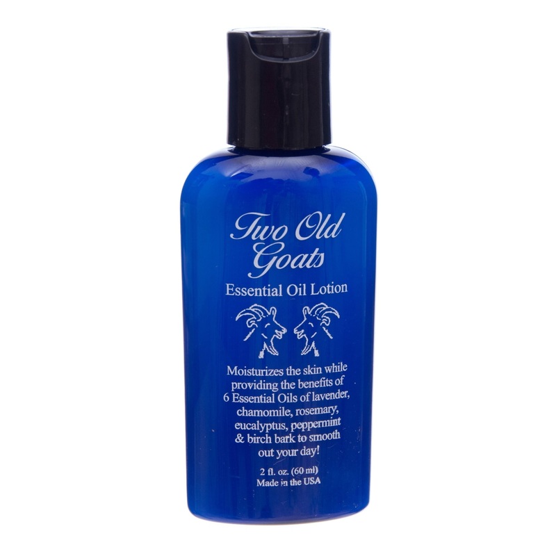 Two Old Goats Essential Oil LotionTwo Old Goats Essential Oil Lotion soothes tired, sore muscles with the power of goats milk and therapeutic-grade essential oils. It begins with a goat milk base, which is a natural moisturizer with a completely non-greasy