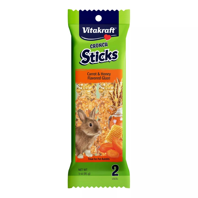 Vitakraft Carrot and Honey Glazed Rabbit Crunch SticksDESCRIPTIONVitakraft Carrot and Honey Glazed Rabbit Crunch Sticks are premium small animal treats and bunny chew toys that are as delicious as they are fun. Feed them to your rabbit to make treat time s
