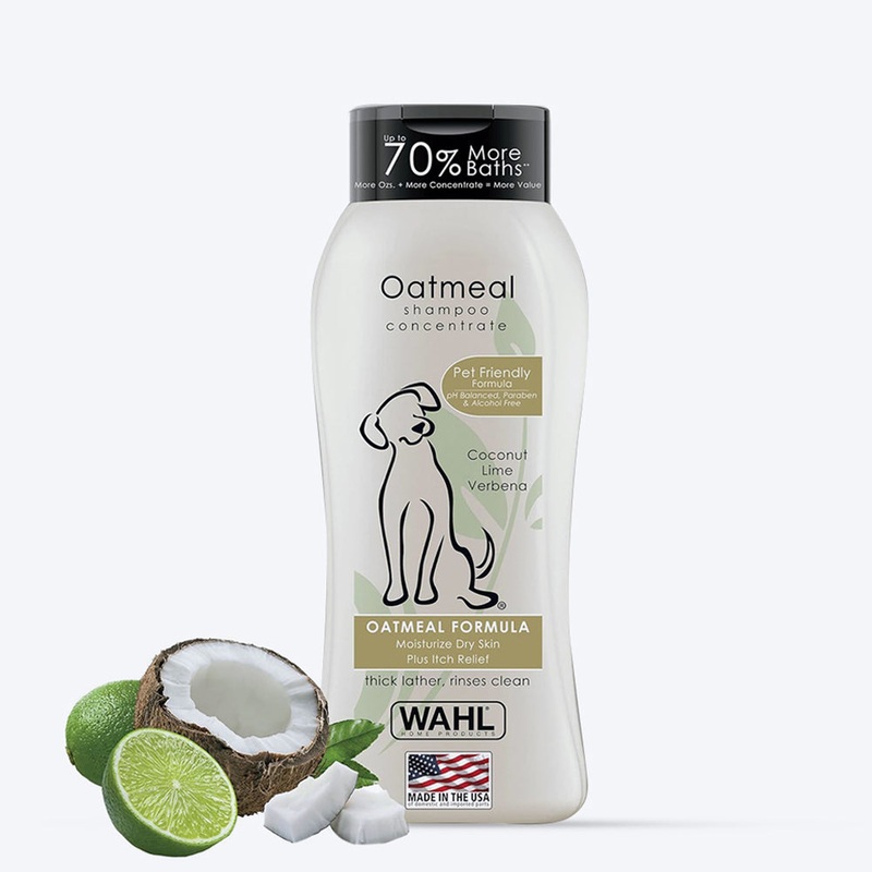 Keep your pet itch-free and smelling great with Wahl Oatmeal Formula Coconut Lime Verbena Pet Shampoo Concentrate 24oz. This plant based cleansing shampoo for pets smells great and is formulated with oatmeal to soothe dry, itchy or sensitive skin. It's fre
