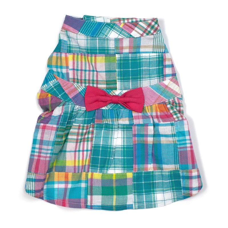 Fabulously stylish for the four-legged fashionista! Constructed of soft cotton fabric, our dresses are sure to make a statement! The classic madras fabric is comfortable to wear and the touch fasteners around the neck and belly provide an adjustable, secur
